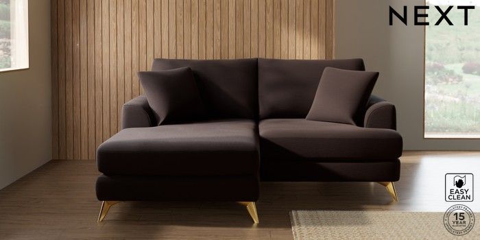 7.2.10 Parker Compact Sofa Chaise - Universal Fine Chenille Easy Clean Chocolate Brown High Metal - Brass | Made Click here to use our website with more accessibility support, for example screen readers
