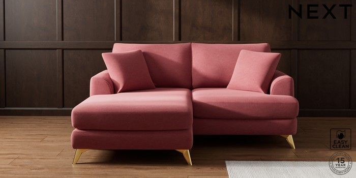 7.2.10 Parker Compact Sofa Chaise - Universal Fine Chenille Easy Clean Mid Pink High Metal - Brass | Made Click here to use our website with more accessibility support, for example screen readers