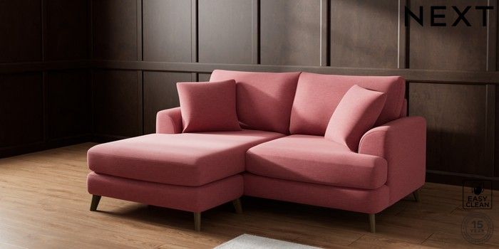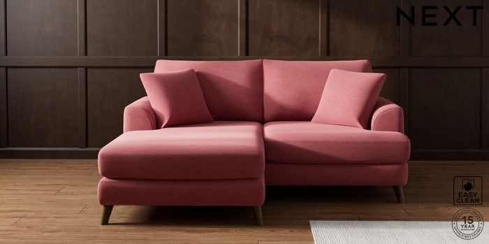 7.2.10 Parker Compact Sofa Chaise - Universal Fine Chenille Easy Clean Mid Pink Low Retro Tapered - Mid | Made Click here to use our website with more accessibility support, for example screen readers