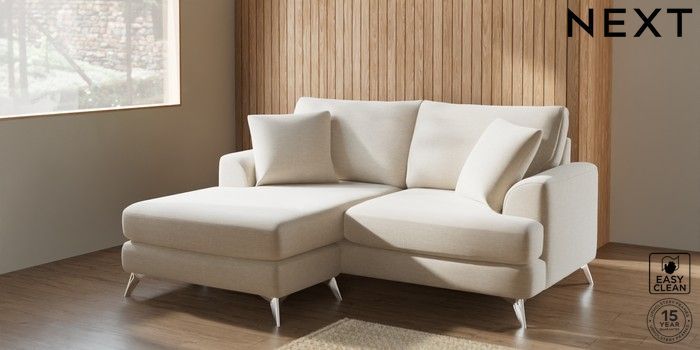 7.2.10 Parker Compact Sofa Chaise - Universal Fine Chenille Easy Clean Oyster High Metal - Chrome | Made Click here to use our website with more accessibility support, for example screen readers