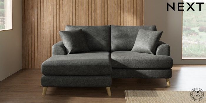 7.2.10 Parker Compact Sofa Chaise - Universal Plush Chenille Dark Grey Low Retro Tapered - Light | Made Click here to use our website with more accessibility support, for example screen readers