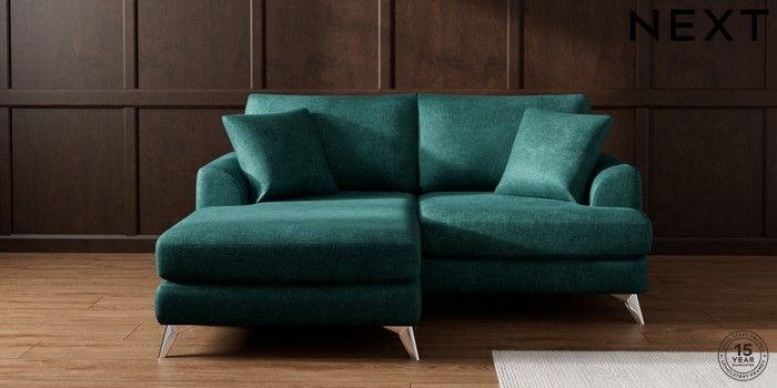 7.2.10 Parker Compact Sofa Chaise - Universal Plush Chenille Dark Teal Green High Metal - Chrome | Made Click here to use our website with more accessibility support, for example screen readers