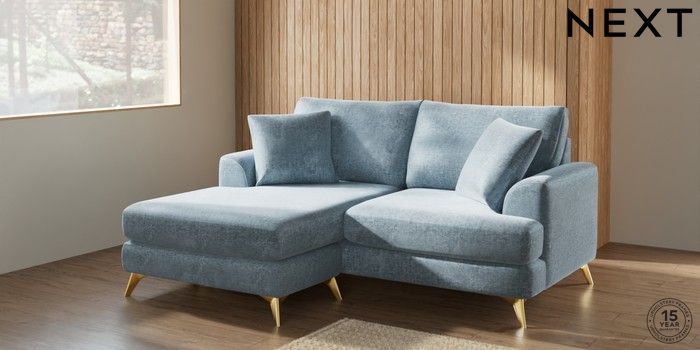 7.2.10 Parker Compact Sofa Chaise - Universal Plush Chenille Light Blue High Metal - Brass | Made Click here to use our website with more accessibility support, for example screen readers