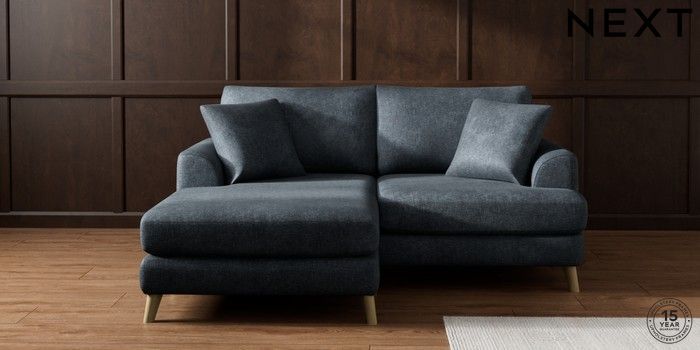 7.2.10 Parker Compact Sofa Chaise - Universal Plush Chenille Slate Blue Low Retro Tapered - Light | Made Click here to use our website with more accessibility support, for example screen readers