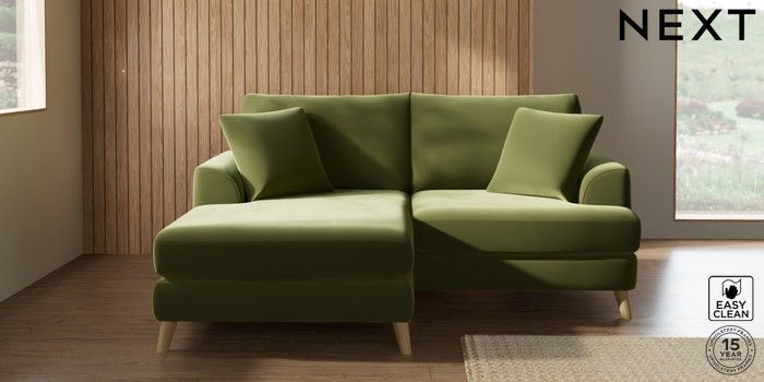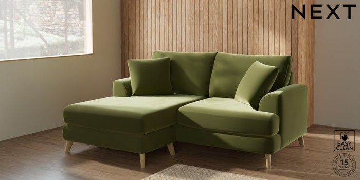 7.2.10 Parker Compact Sofa Chaise - Universal Plush Velvet Easy Clean Mid Olive Green Low Retro Tapered - Light | Made Click here to use our website with more accessibility support, for example screen readers