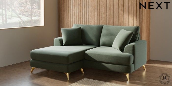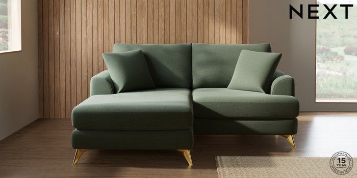 7.2.10 Parker Compact Sofa Chaise - Universal Relaxed Linen Look Dark Green High Metal - Brass | Made Click here to use our website with more accessibility support, for example screen readers