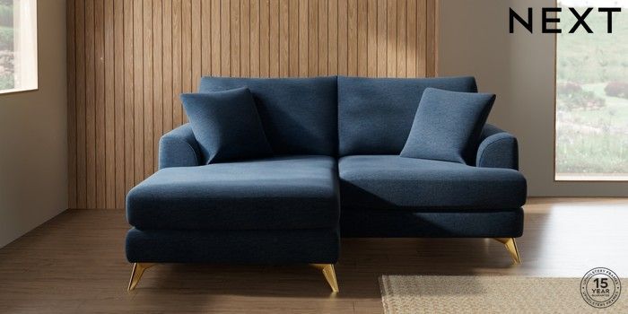 7.2.10 Parker Compact Sofa Chaise - Universal Ripple Chenille Dark Blue High Metal - Brass | Made Click here to use our website with more accessibility support, for example screen readers