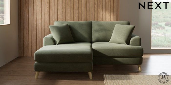 7.2.10 Parker Compact Sofa Chaise - Universal Ripple Chenille Mid Moss Green Low Retro Tapered - Light | Made Click here to use our website with more accessibility support, for example screen readers