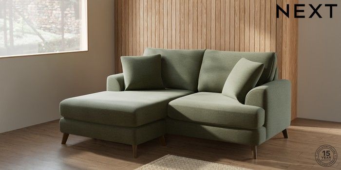 7.2.10 Parker Compact Sofa Chaise - Universal Ripple Chenille Mid Moss Green Low Retro Tapered - Mid | Made Click here to use our website with more accessibility support, for example screen readers