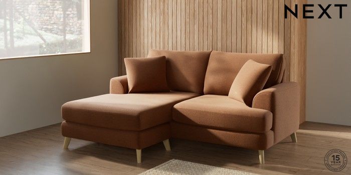 7.2.10 Parker Compact Sofa Chaise - Universal Ripple Chenille Mid Rust Brown Low Retro Tapered - Light | Made Click here to use our website with more accessibility support, for example screen readers