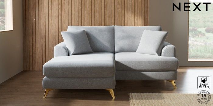 7.2.10 Parker Compact Sofa Chaise - Universal Tweedy Blend Easy Clean Light Silver Grey High Metal - Brass | Made Click here to use our website with more accessibility support, for example screen readers