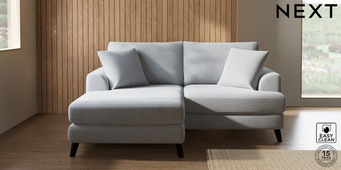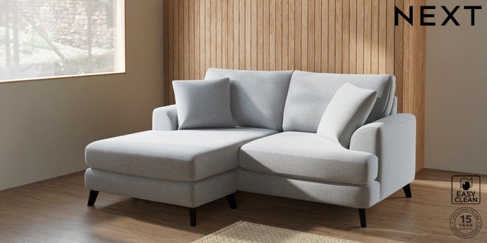 7.2.10 Parker Compact Sofa Chaise - Universal Tweedy Blend Easy Clean Light Silver Grey Low Retro Tapered - Dark | Made Click here to use our website with more accessibility support, for example screen readers