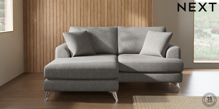 7.2.10 Parker Compact Sofa Chaise - Universal Tweedy Chenille Mid Grey High Metal - Chrome | Made Click here to use our website with more accessibility support, for example screen readers