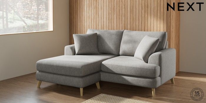 7.2.10 Parker Compact Sofa Chaise - Universal Tweedy Chenille Mid Grey Low Retro Tapered - Light | Made Click here to use our website with more accessibility support, for example screen readers