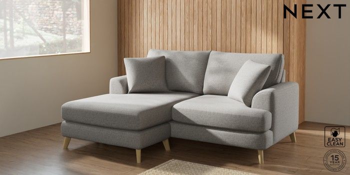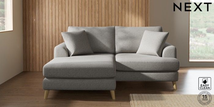 7.2.10 Parker Compact Sofa Chaise - Universal Woven Chenille Easy Clean Light Grey Low Retro Tapered - Light | Made Click here to use our website with more accessibility support, for example screen readers
