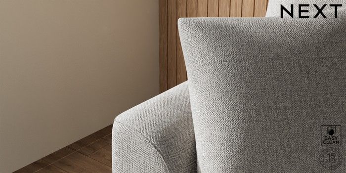 7.2.10 Parker Compact Sofa Chaise - Universal Woven Chenille Easy Clean Light Grey Low Retro Tapered - Mid | Made Click here to use our website with more accessibility support, for example screen readers