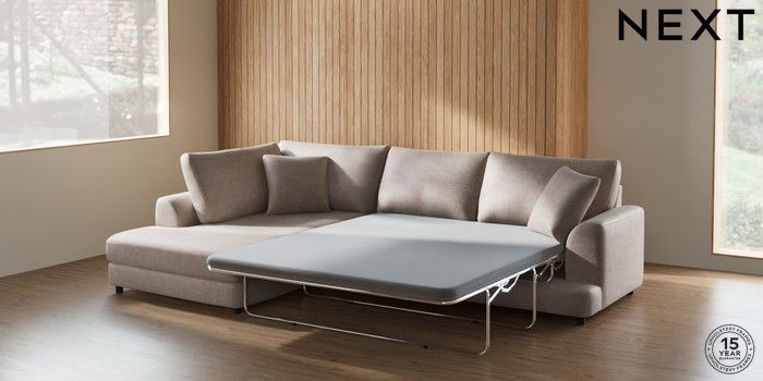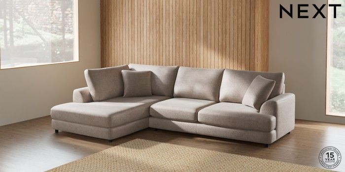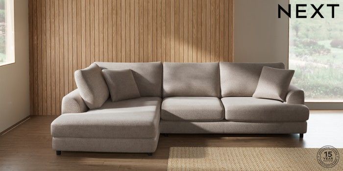 7.2.10 Parker Corner Chaise Bed - Left Hand Boucle Chenille Light Natural Glide | Made Click here to use our website with more accessibility support, for example screen readers