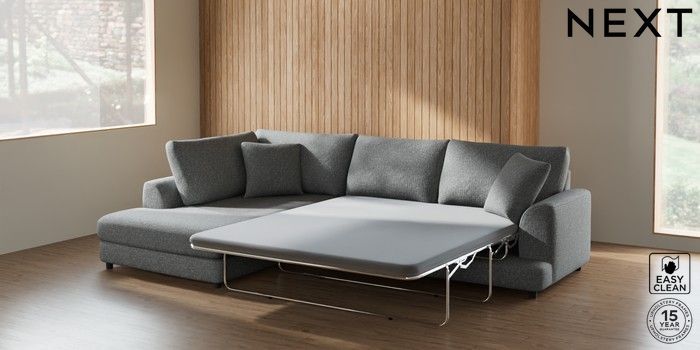 7.2.10 Parker Corner Chaise Bed - Left Hand Chunky Boucle Easy Clean Mid Grey Glide | Made Click here to use our website with more accessibility support, for example screen readers