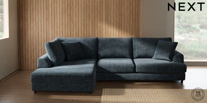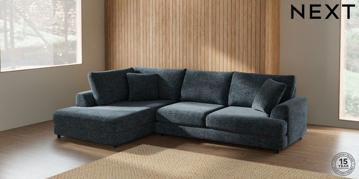 7.2.10 Parker Corner Chaise Bed - Left Hand Chunky Chenille Dark Navy Blue Glide | Made Click here to use our website with more accessibility support, for example screen readers