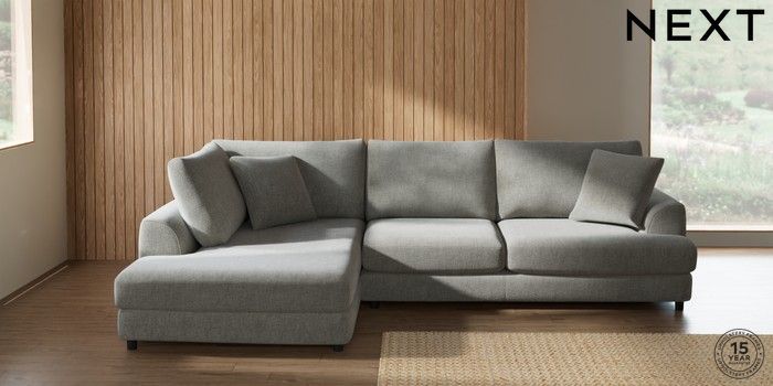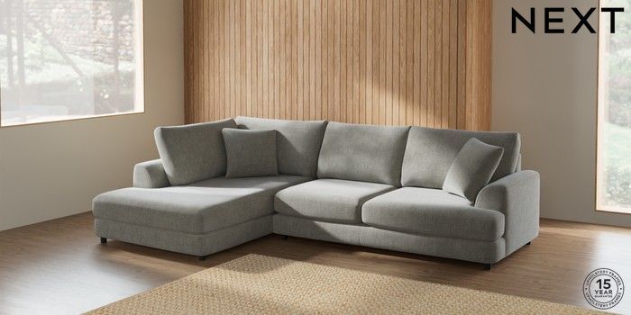 7.2.10 Parker Corner Chaise Bed - Left Hand Chunky Chenille Light Grey Glide | Made Click here to use our website with more accessibility support, for example screen readers