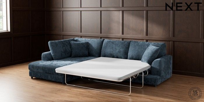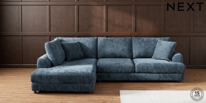 7.2.10 Parker Corner Chaise Bed - Left Hand Distressed Velour Midnight Blue Glide | Made Click here to use our website with more accessibility support, for example screen readers