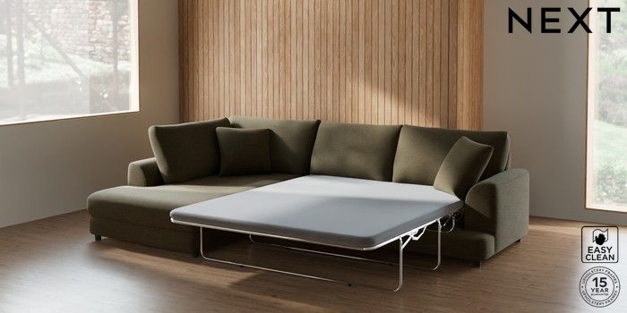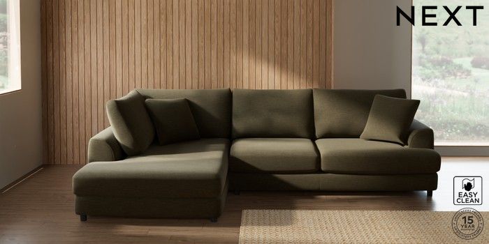 7.2.10 Parker Corner Chaise Bed - Left Hand Fine Chenille Easy Clean Dark Moss Green Glide | Made Click here to use our website with more accessibility support, for example screen readers