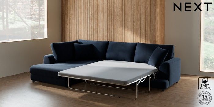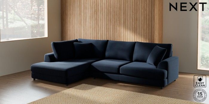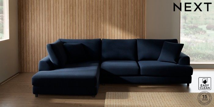 7.2.10 Parker Corner Chaise Bed - Left Hand Fine Chenille Easy Clean Dark Navy Blue Glide | Made Click here to use our website with more accessibility support, for example screen readers