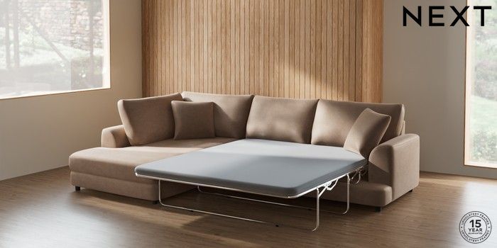 7.2.10 Parker Corner Chaise Bed - Left Hand Luxe Chenille Mid Natural Glide | Made Click here to use our website with more accessibility support, for example screen readers