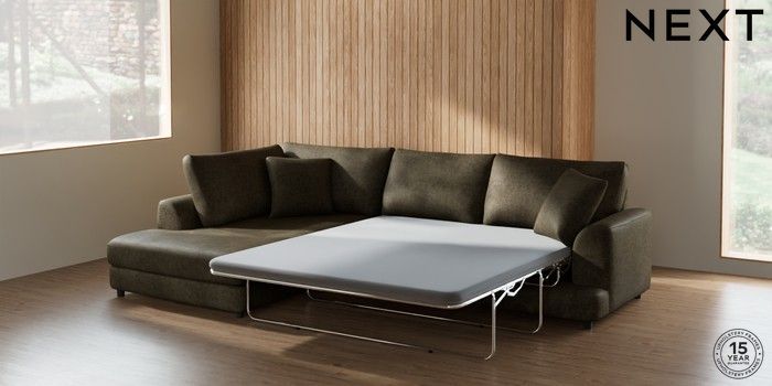 7.2.10 Parker Corner Chaise Bed - Left Hand Plush Chenille Moss Green Glide | Made Click here to use our website with more accessibility support, for example screen readers