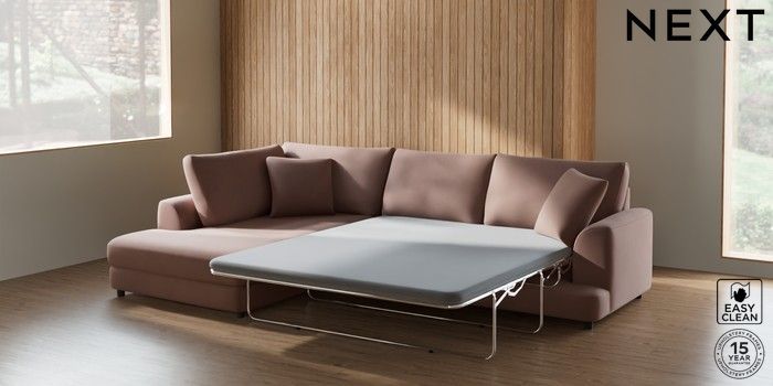 7.2.10 Parker Corner Chaise Bed - Left Hand Plush Velvet Easy Clean Mid Natural Glide | Made Click here to use our website with more accessibility support, for example screen readers