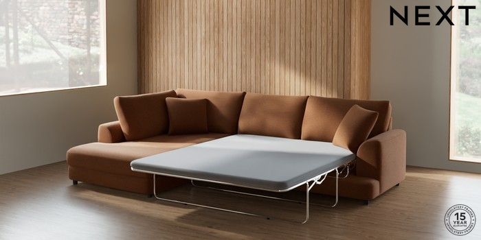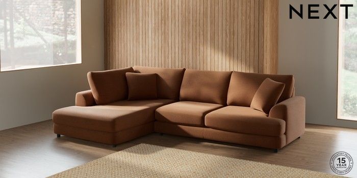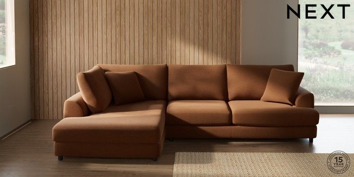 7.2.10 Parker Corner Chaise Bed - Left Hand Ripple Chenille Mid Rust Brown Glide | Made Click here to use our website with more accessibility support, for example screen readers