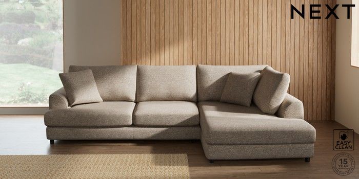 7.2.10 Parker Corner Chaise Bed - Right Hand Chunky Boucle Easy Clean Mid Natural Glide | Made Click here to use our website with more accessibility support, for example screen readers