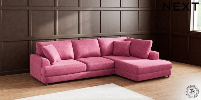 7.2.10 Parker Corner Chaise Bed - Right Hand Cotswold Chenille Dark Raspberry Pink Glide | Made Click here to use our website with more accessibility support, for example screen readers