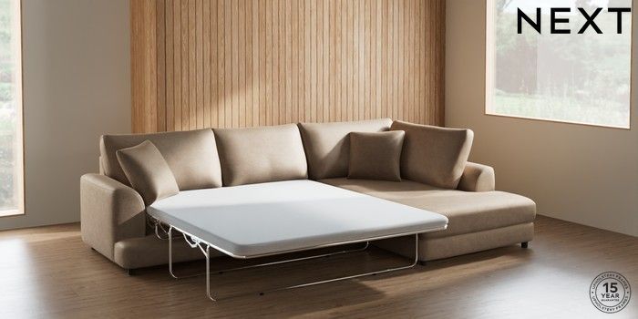 7.2.10 Parker Corner Chaise Bed - Right Hand Luxe Chenille Mid Camel Beige Glide | Made Click here to use our website with more accessibility support, for example screen readers