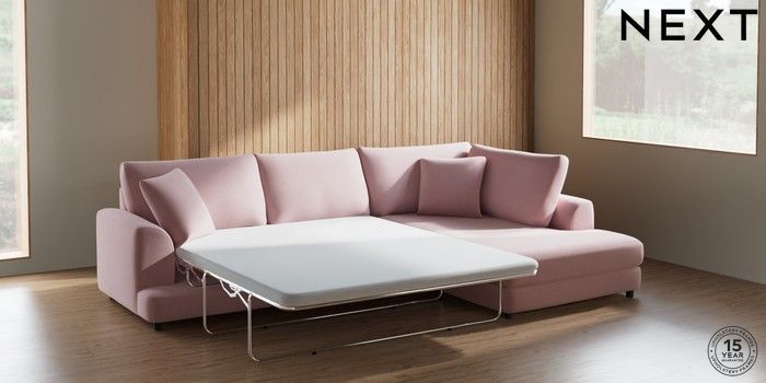 7.2.10 Parker Corner Chaise Bed - Right Hand Natural Mix Light Rose Pink Glide | Made Click here to use our website with more accessibility support, for example screen readers