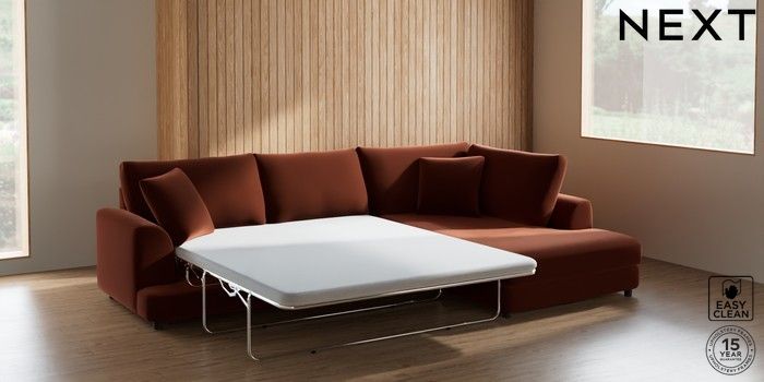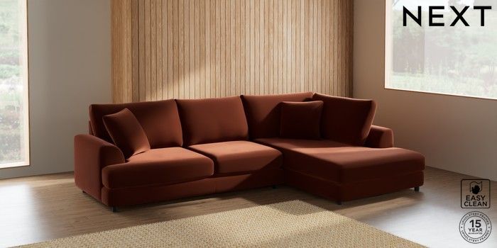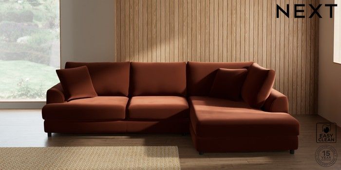 7.2.10 Parker Corner Chaise Bed - Right Hand Plush Velvet Easy Clean Ginger Orange Glide | Made Click here to use our website with more accessibility support, for example screen readers