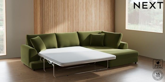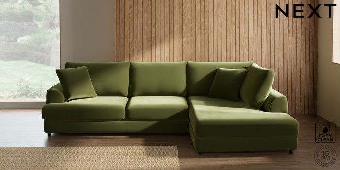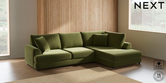 7.2.10 Parker Corner Chaise Bed - Right Hand Plush Velvet Easy Clean Mid Olive Green Glide | Made Click here to use our website with more accessibility support, for example screen readers