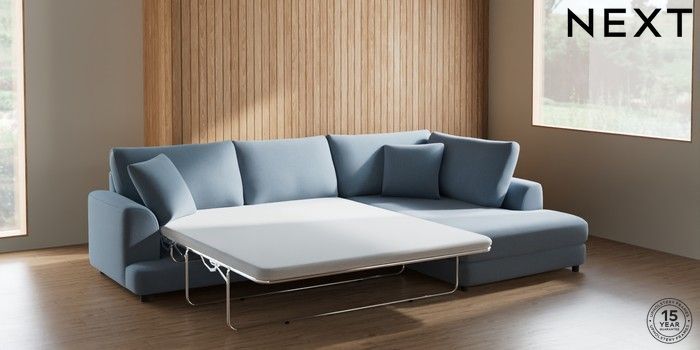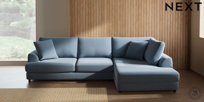7.2.10 Parker Corner Chaise Bed - Right Hand Relaxed Linen Look Mid Blue Glide | Made Click here to use our website with more accessibility support, for example screen readers