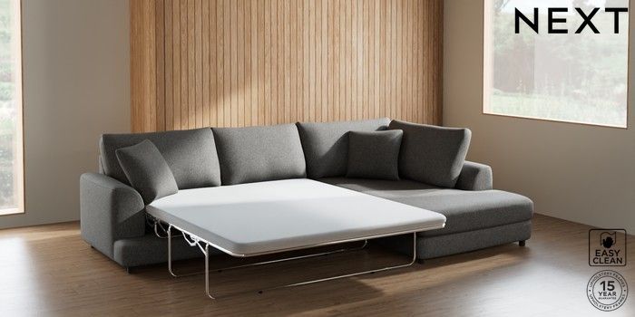7.2.10 Parker Corner Chaise Bed - Right Hand Tweedy Blend Easy Clean Dark Grey Glide | Made Click here to use our website with more accessibility support, for example screen readers