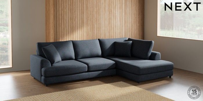 7.2.10 Parker Corner Chaise Bed - Right Hand Tweedy Chenille Navy Blue Glide | Made Click here to use our website with more accessibility support, for example screen readers