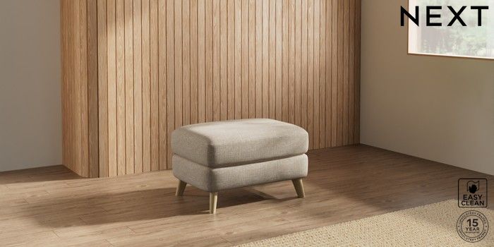 7.2.10 Parker Footstool Boucle Weave Easy Clean Dark Natural Low Retro Tapered - Light | Made Click here to use our website with more accessibility support, for example screen readers