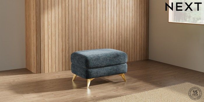 7.2.10 Parker Footstool Chunky Chenille Dark Navy Blue High Metal - Brass | Made Click here to use our website with more accessibility support, for example screen readers