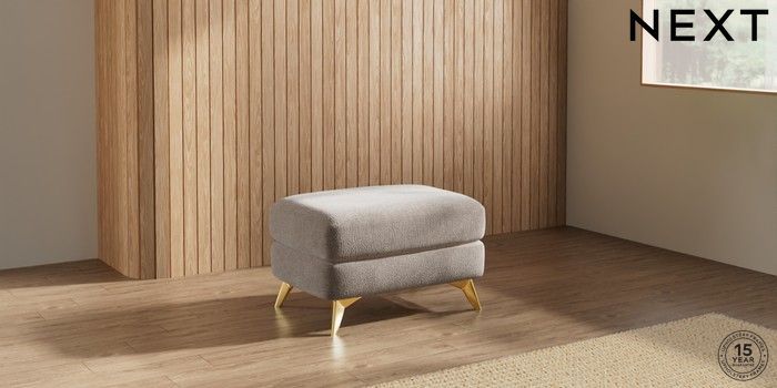 7.2.10 Parker Footstool Chunky Chenille Light Dove High Metal - Brass | Made Click here to use our website with more accessibility support, for example screen readers