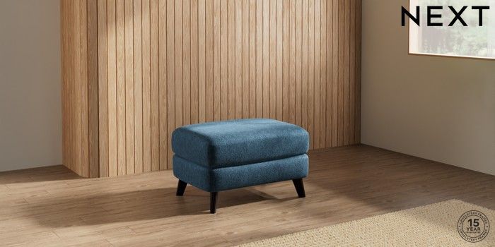 7.2.10 Parker Footstool Cotswold Chenille Dark Blue Low Retro Tapered - Dark | Made Click here to use our website with more accessibility support, for example screen readers