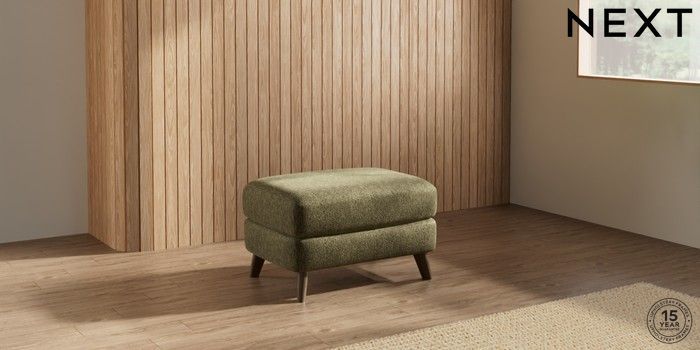 7.2.10 Parker Footstool Cotswold Chenille Dark Green Low Retro Tapered - Mid | Made Click here to use our website with more accessibility support, for example screen readers