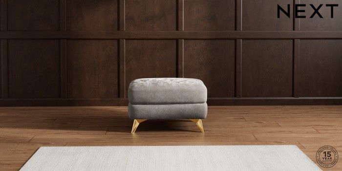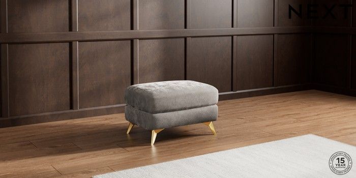 7.2.10 Parker Footstool Distressed Velour French Grey High Metal - Brass | Made Click here to use our website with more accessibility support, for example screen readers