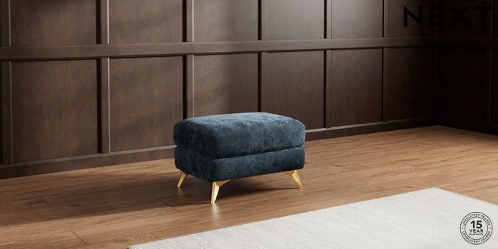 7.2.10 Parker Footstool Distressed Velour Midnight Blue High Metal - Brass | Made Click here to use our website with more accessibility support, for example screen readers