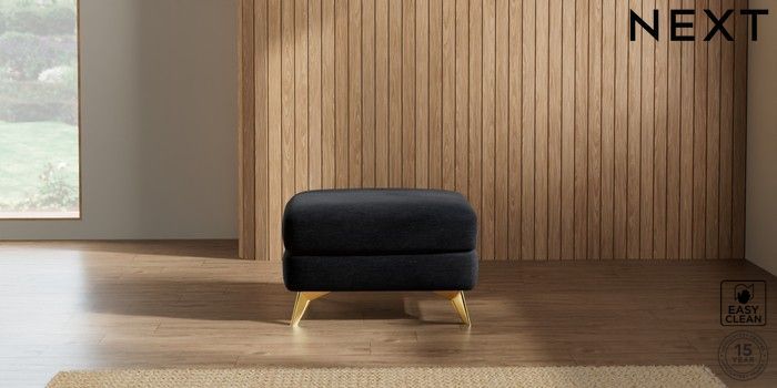 7.2.10 Parker Footstool Fine Chenille Easy Clean Black High Metal - Brass | Made Click here to use our website with more accessibility support, for example screen readers