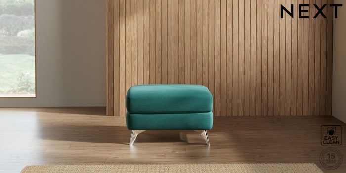 7.2.10 Parker Footstool Fine Chenille Easy Clean Dark Juniper Green High Metal - Chrome | Made Click here to use our website with more accessibility support, for example screen readers