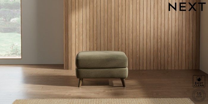 7.2.10 Parker Footstool Fine Chenille Easy Clean Dark Moss Green Low Retro Tapered - Mid | Made Click here to use our website with more accessibility support, for example screen readers